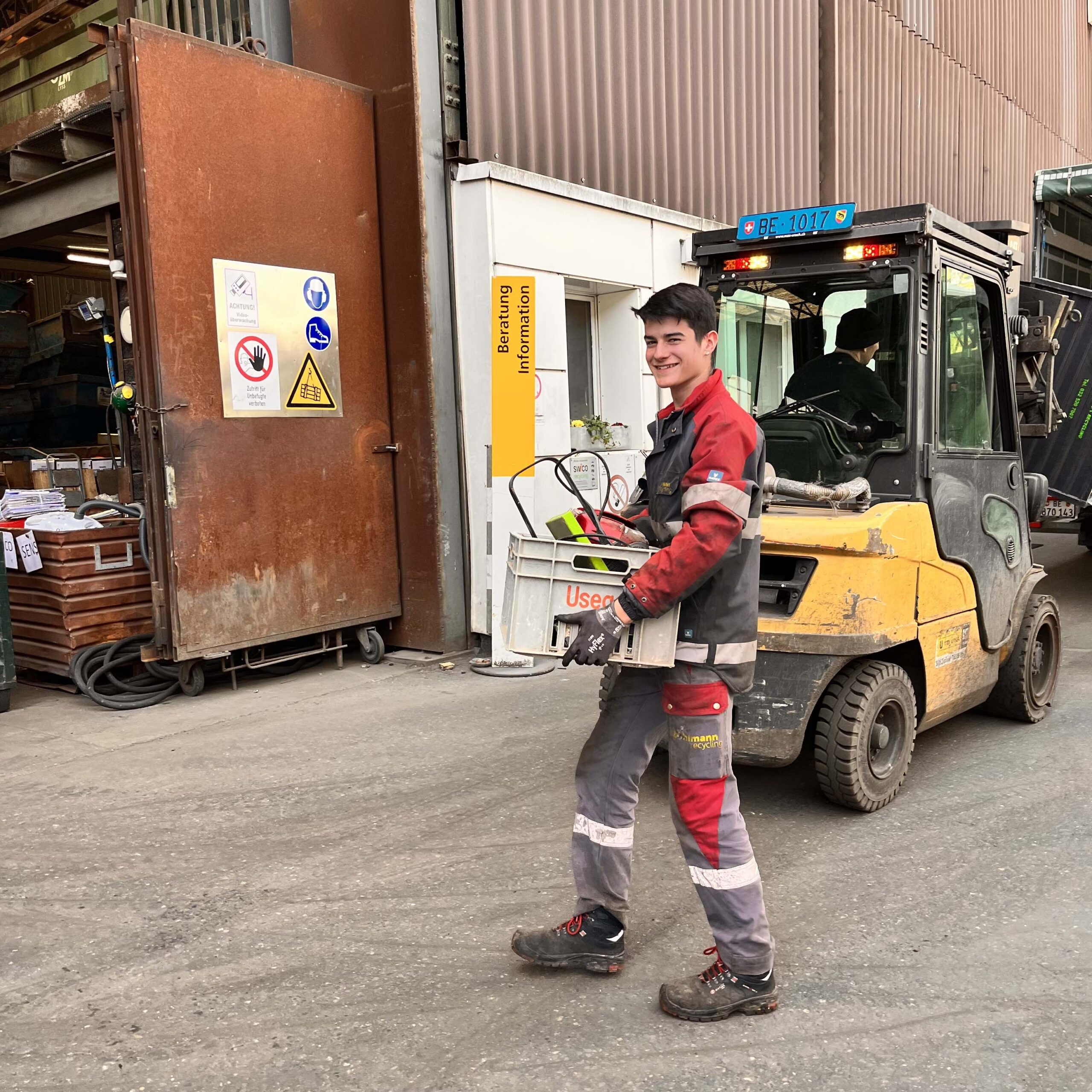 Seit August 2021 arbeitet Nicolas Zurbuchen aus Schüpfen im ersten Lehrjahr bei edi Entsorgungsdienste AG in Lyss. Seine Schnupperlehre hat er auch hier absolviert. Die Arbeit und der Umgang untereinander gefallen ihm besonders. Nicolas liebt Maschinen, ganz speziell den Bagger. Falls er nicht Recyclist geworden wäre, hätte er sich für den Beruf Betriebsunterhalter entschieden – welch’ gute Entscheidung für beiden Seiten. 😉